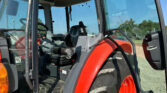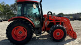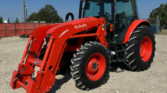 The 2021 Kubota M5-091D MFWD tractor has 202 hours and is powered by a 3.8L Kubota V3800 diesel engine with 92.5 HP and a synchro transmission (8F-8R) with left-hand reverser and differential lock. It features an enclosed cab with AC and heat. The tractor is equipped with a 540 PTO, three-point hitch with top link, seven-pin outlet, and two hydraulic remote sets. It includes a Kubota LA1854 loader with quick attach and joystick controls. The tractor is…