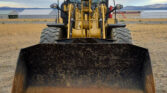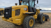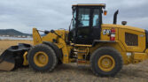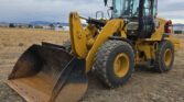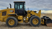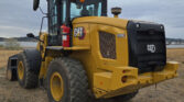 The 2023 Caterpillar 930M wheel loader has 501 hours and is powered by a 7.01L Caterpillar C7.1 diesel engine with a Powershift transmission (4F-4R). It features an enclosed cab with AC and heat, joystick bucket controls, and ride control. The loader includes front auxiliary hydraulics, a hydraulic quick coupler, and a 3 cu.yd. Caterpillar self-leveling bucket with a bolt-on cutting edge. It is equipped with 20.5R25 tires and a limited slip differential.